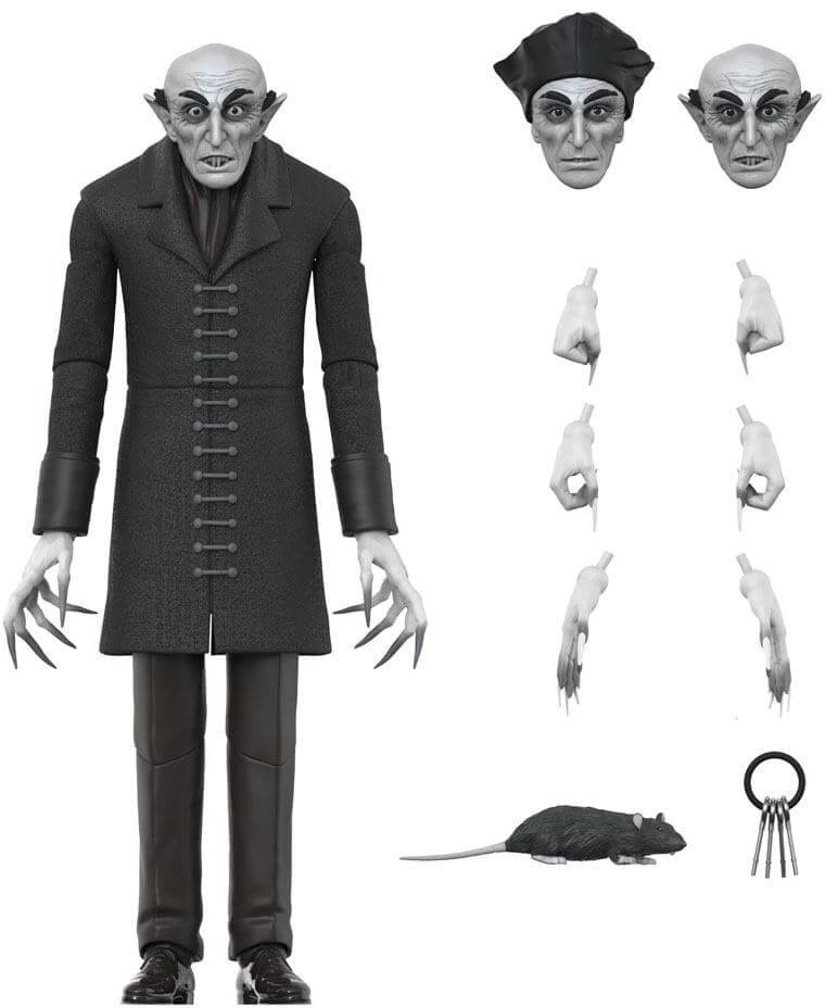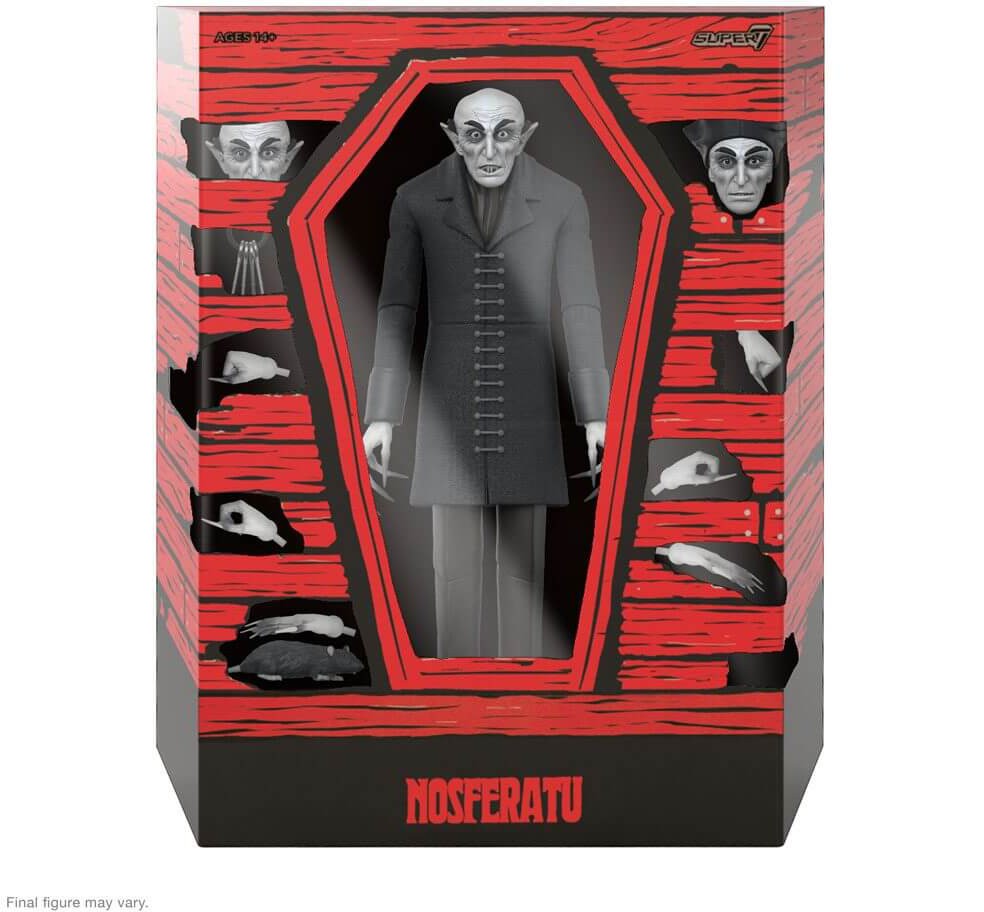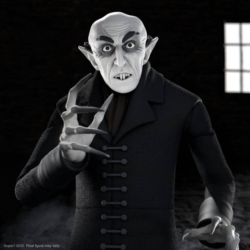 It's been 100 years since the classic horror film Nosferatu was released and Count Orlok looks none the worse for wear, which is to say, still super creepy! Super7 is proud to introduce the 7" scale Nosferatu ULTIMATES! figure of the ageless vampire Count Orlok, icon of early cinema horror! Intricately sculpted with multiple interchangeable hands and heads, the haunting nature of the character is brought to life in this highly articulated, made-to-order figure! Slake your unquenchable thirst for classic horror nostalgia with the Nosferatu ULTIMATES! figure of the character that brought vampires out of the literary realm and onto the silver screen!