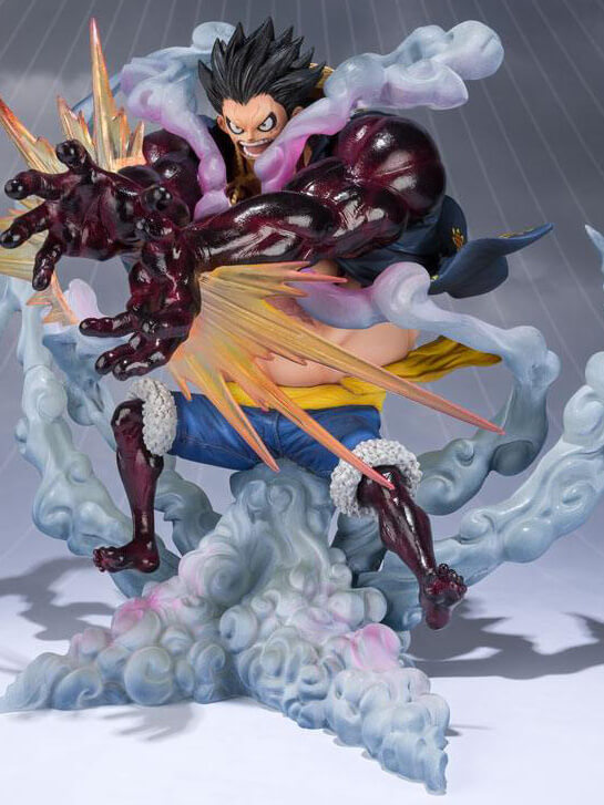 The FigurartsZERO Chogekisen EXTRA BATTLE series of fixed-pose figures with incredibly dynamic effects is back, with Monkey D. Luffy in Gear 4 Leo Bazooka! Translucent effect parts heighten the impact of his dynamic pose, while his fierce expression and spectacular crimson coloration will take your breath away! Includes a stand.