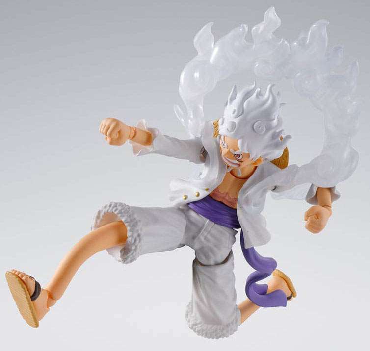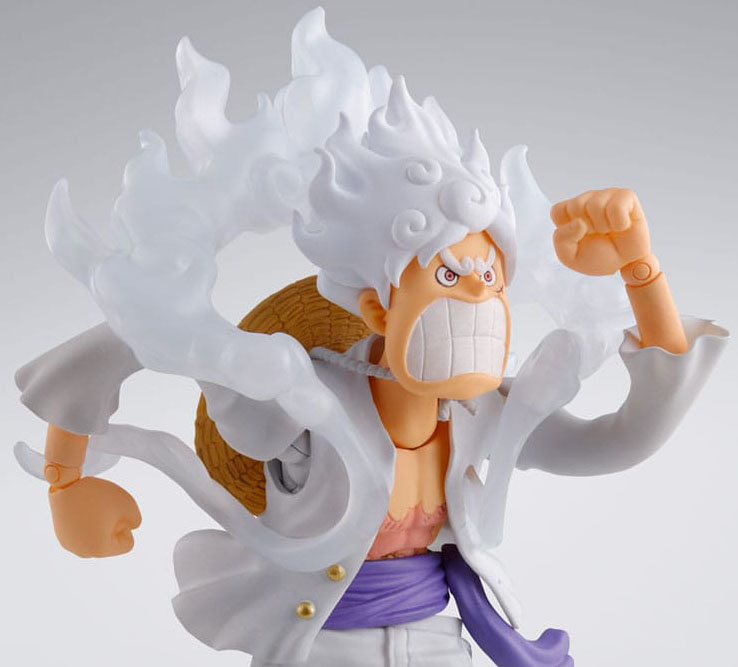 From the animated series "ONE PIECE," MONKEY.D.LUFFY -GEAR5- joins S.H.Figuarts! Featuring arms and legs with embedded wires for wild posability! Combine with lots of options, including numerous optional expressions and extended arms. to re-create dramatic moments from the show.