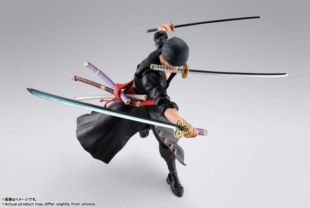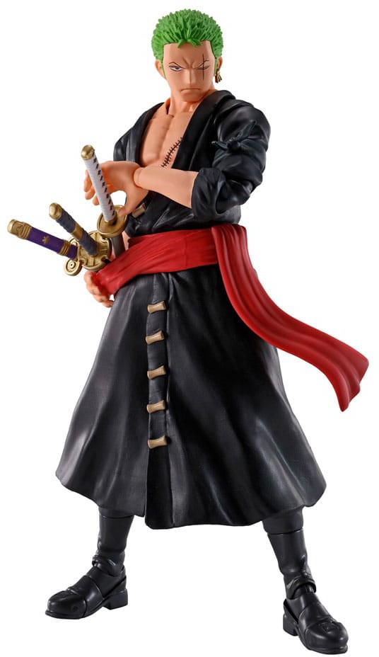 Roronoa Zoro, as seen in The Raid on Onigashima arc of the ONE PIECE animated series, rejoins S.H.Figuarts with an all new sculpt! Superb articulation and flexible parts make for dynamic posability. Also includes an optional expression for the Monkey D. Luffy - The Raid on Onigashima - S.H.Figuarts toy (sold separately).