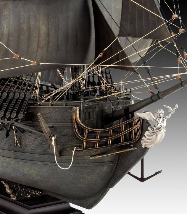 A model construction kit of the legendary "Black Pearl" the ship commanded by Captain Jack Sparrow in the film series PIRATES OF THE CARIBBEAN. In the fifth part "SALAZAR'S REVENGE", Jack faces the fearsome Captain Salazar, who wants to kill every pirate on the open seas.