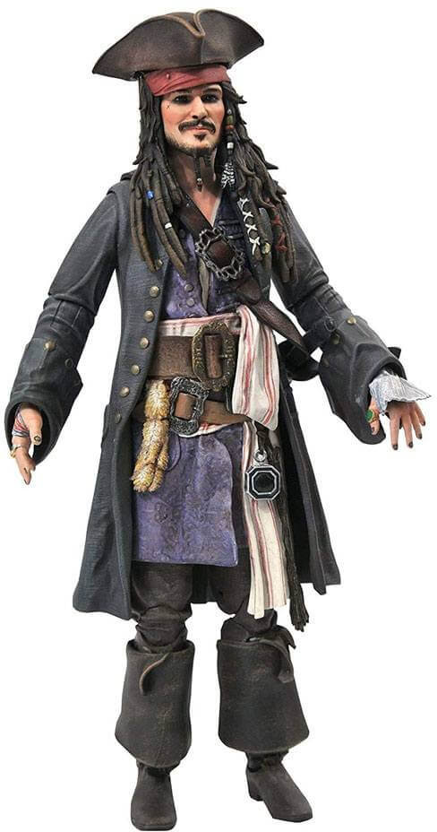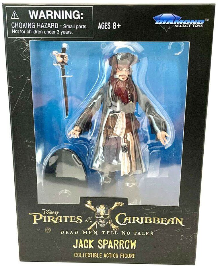 The 7-inch scale highly detailed Diamond Select collectors action figure featuring Jack Sparrow from The Pirates of the Caribbean, complete with accessories.