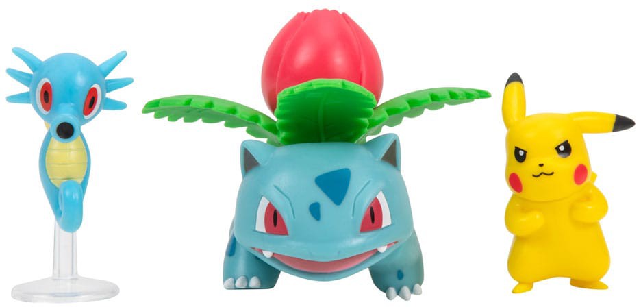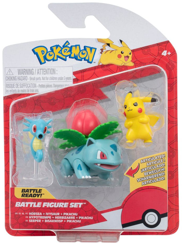 Var vänlig ställ din fråga om produkten "Pokémon Battle Figure - Pikachu, Horsea and Ivysaur 3-Pack" nedan, så svarar vi så snart som möjligt!