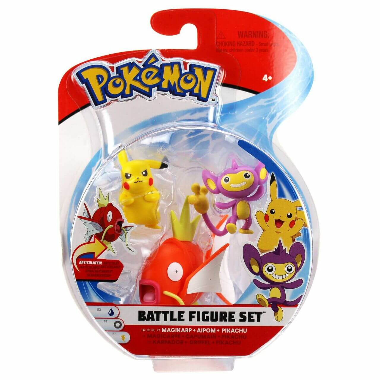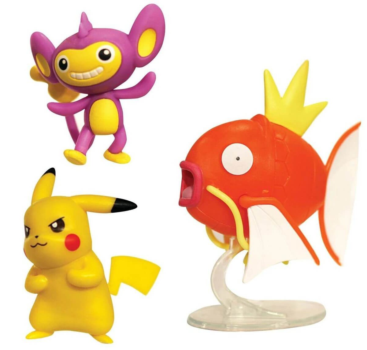 Var vänlig ställ din fråga om produkten "Pokémon - Battle Figure Set - Magikarp, Aipom & Pikachu" nedan, så svarar vi så snart som möjligt!