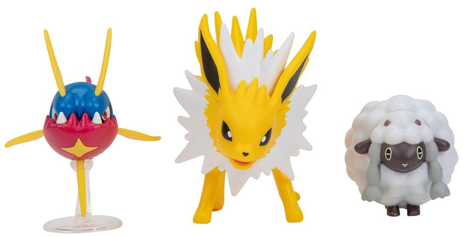 Från Pokémons "Battle Figure Pack"-serie kommer detta paket med 3 detaljerade minifigurer. De är ca 5 cm höga och levereras i en blisterförpackning.