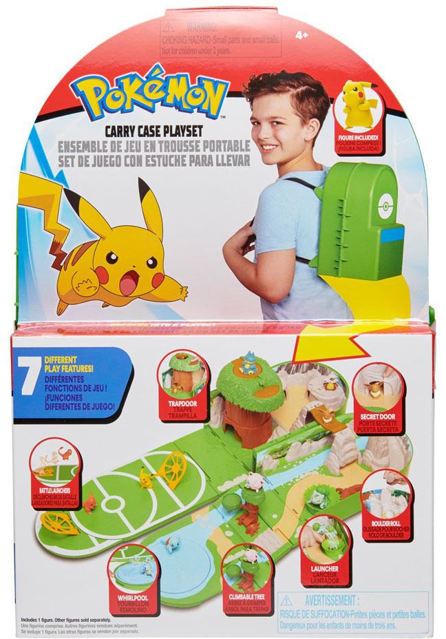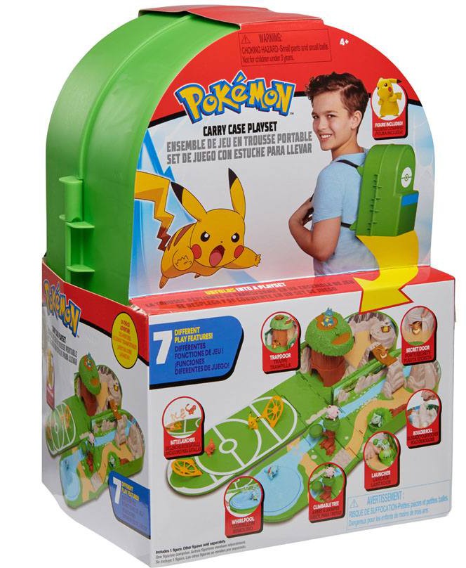 Bring the excitement of the Pokémon world home with the Pokémon Carry Case Playset! Now your favorite 2"-3" Pokémon figures can escape a bounding boulder, fall through a treetop trap door, launch into battle, and more with all of the awesome locations that the Carry Case Playset has. The Pokémon Carry Case Playset easily folds up into a backpack just like the one Ash Ketchum has in the smash-hit Pokémon TV series! Take the Pokémon Carry Case Playset with you wherever your Pokémon adventure takes you!