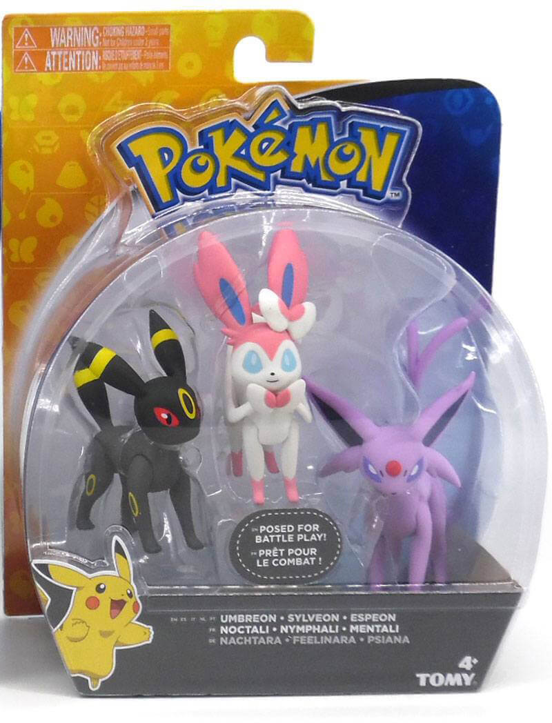 Espeon, Umbreon & Sylveon Pokemon action figures 3-packs. Each figure stands 6 cm tall.