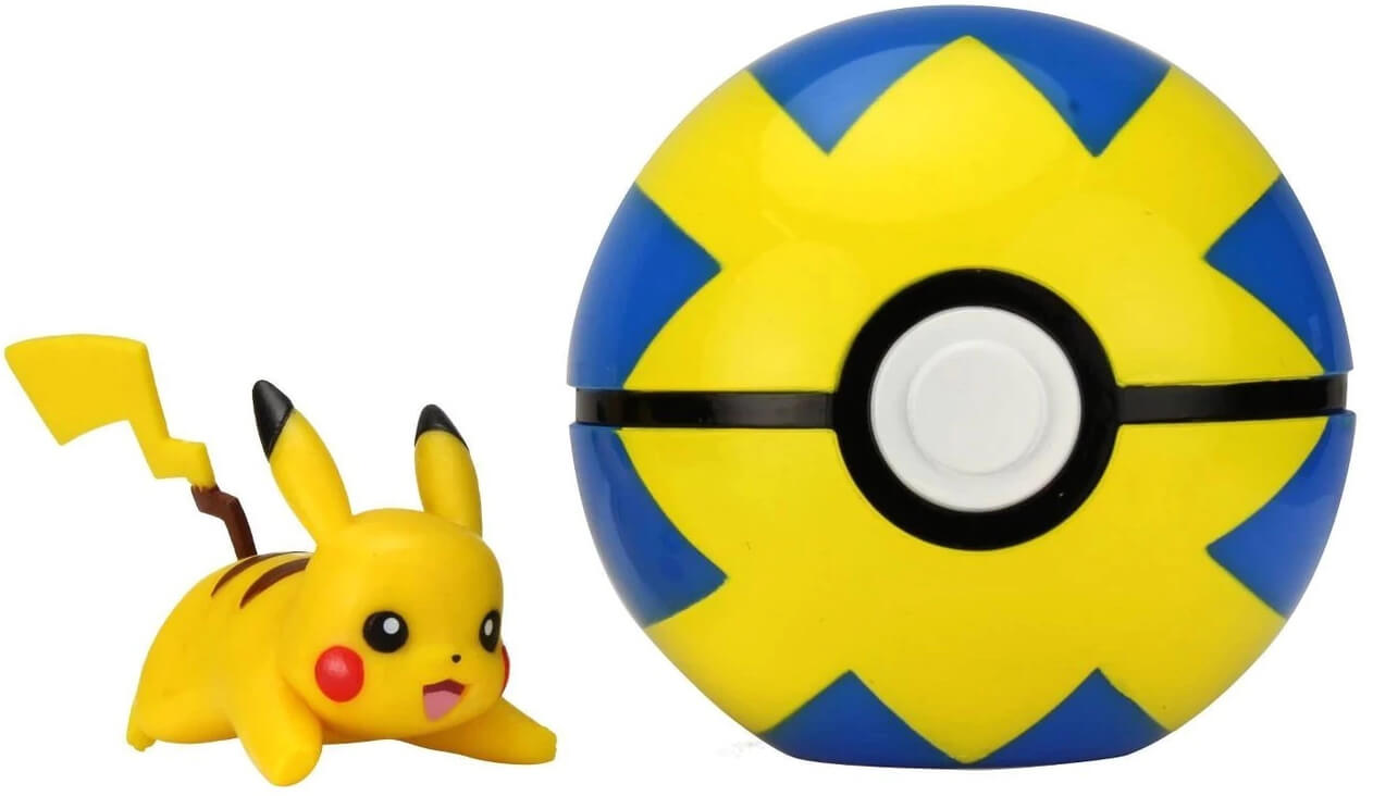 Pikachu med tillhörande en Quick Ball.