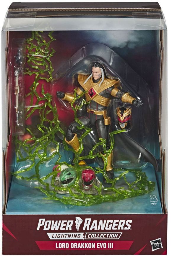 This 15 cm Lightning Collection Lord Drakkon EVO III figure features premium paint and decorative details inspired by Boom Comics storyline Shattered Grid, with over 20 points of articulation for high poseability, and comes with damaged Power Ranger helmets, multiple other character-inspired accessories, and blast effect piece for more ways to play or display. Go Go Power Rangers!