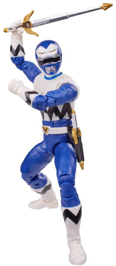 15 cm lång Lost Galaxy Blue Ranger actionfigur med över 20 ledpunkter. Med utbytbara huvuden för att visa honom med eller utan hjälm, utbytbara händer och flera tillbehör.
