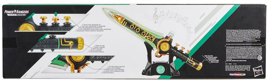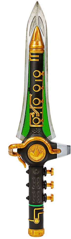 Denna Lightning Collection Mighty Morphin Green Dragon Dagger replika har premiumfärg och dekorativa detaljer inspirerade av showen, knappaktiverade ljus- och ljudeffekter och ett stativ för visning i din samling. Go Go Power Rangers!