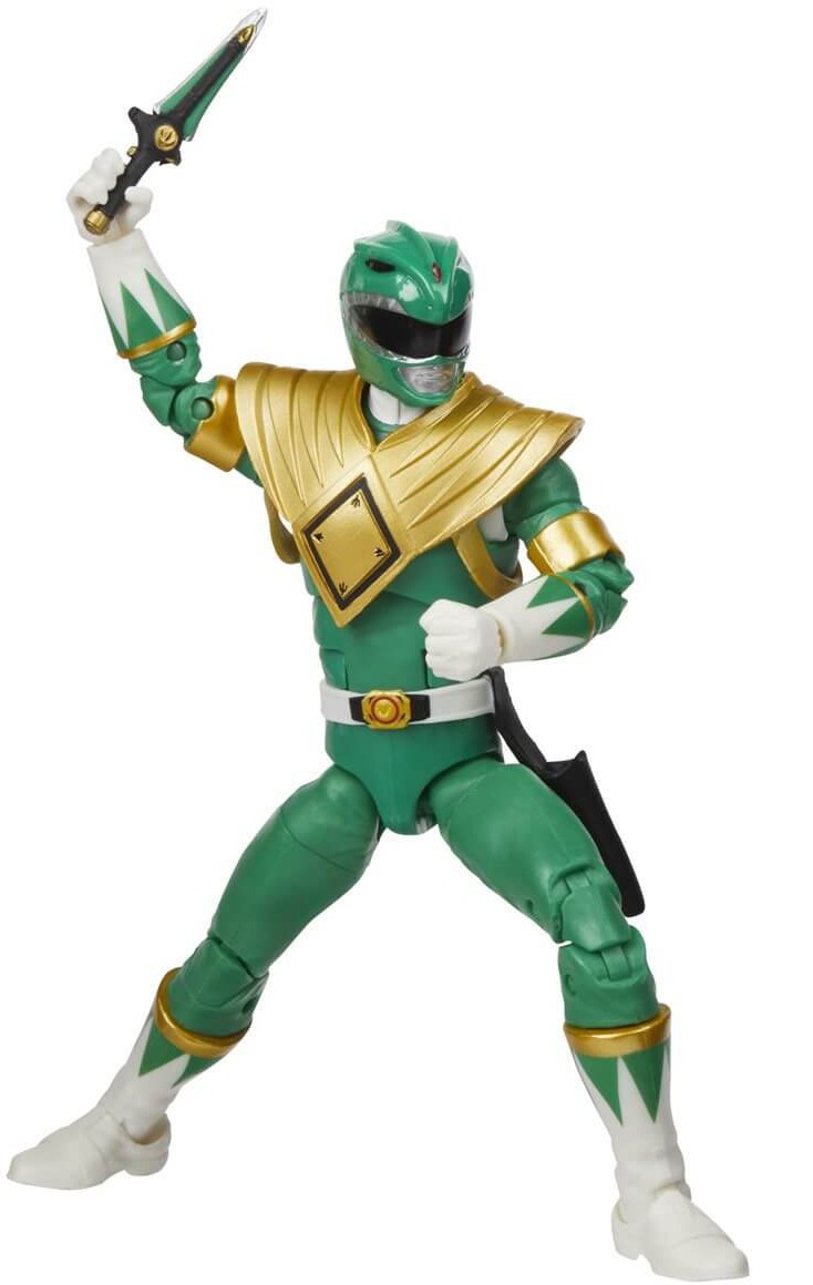 This 6-inch Lightning Collection Green Ranger figure features premium paint and decorative details inspired by the show, over 20 points of articulation for high poseability, swappable heads to display the Ranger with or without his helmet, Dragon Dagger and Sword of Darkness accessories, and a blast effect piece, and an extra pair of hands for more ways to play or display. Go Go Power Rangers!