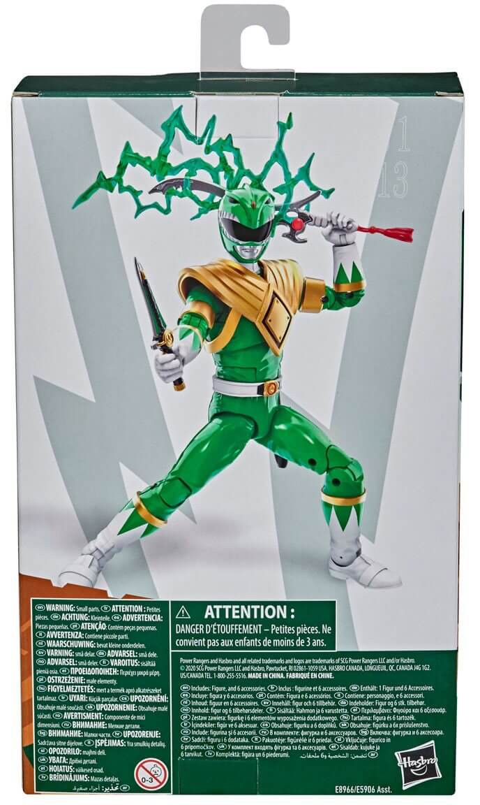 Den här 6-tums Lightning Collection Green Ranger-figuren har premiumfärg och dekorativa detaljer inspirerade av showen, över 20 ledpunkter för hög hållbarhet, bytbara huvuden för att visa Ranger med eller utan sin hjälm, Dragon Dagger och Sword of Darkness-tillbehör, och en blasteffektbit och ett extra par händer för fler sätt att spela eller visa. Go Go Power Rangers!