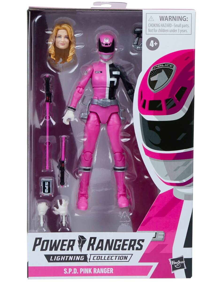 Denna 15 cm Lightning Collection S.P.D. Pink Ranger-figuren har premiumfärg och dekorativa detaljer inspirerade av showen, över 20 artikuleringspunkter för hög positionering, bytbara huvuden för att visa Ranger med eller utan hjälm, Delta Morpher, flera lägen för Deltamax Striker-tillbehör, blasteffekt, och ett extra par händer. Go Go Power Rangers!