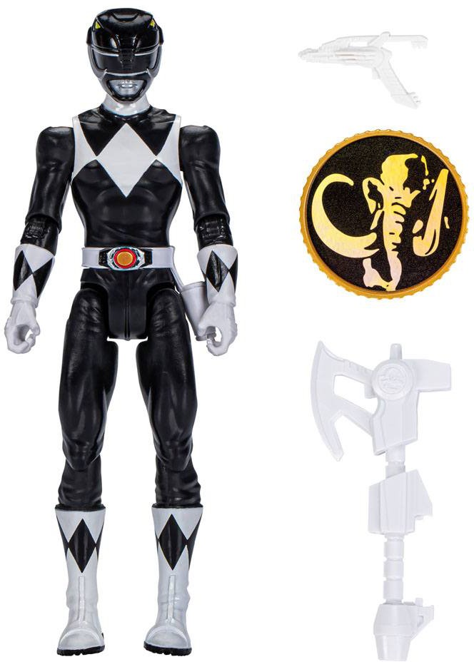 POWER RANGERS BLACK RANGER ACTION FIGURE: Inspired by Mighty Morphin Power Rangers; this Black Ranger figures comes with 2 weapon accessories and a Mastodon coin accessory