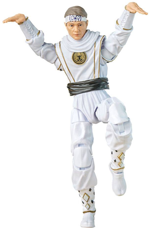 WAX ON... IT'S MORPHIN TIME: This Morphed Daniel LaRusso White Crane Ranger includes an alternate head, accessory scarf, alternate hands, and blast effect piece