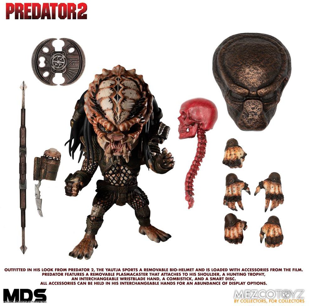 Yautja är utrustad i sitt utseende från Predator 2 och har en avtagbar Bio-hjälm och kommer med flera tillbehör från filmen.