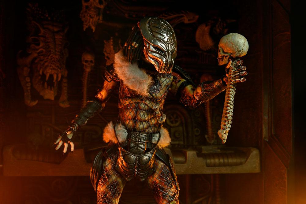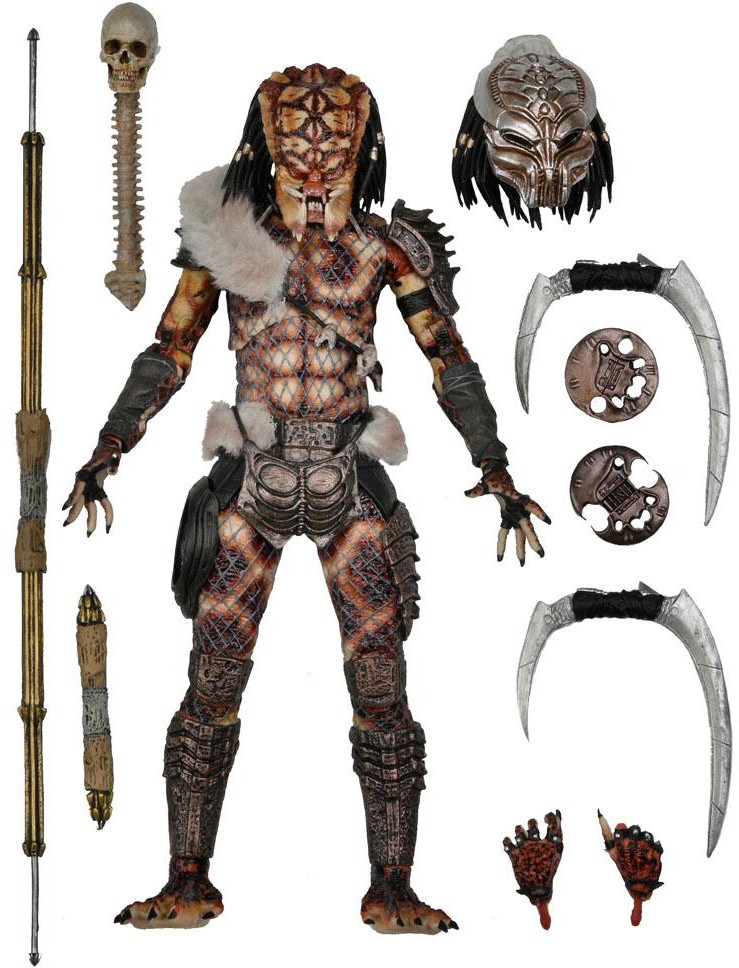 Predator 2, the action-packed sequel to the original movie, moved the hunt to Los Angeles and revealed a Lost Tribe of alien hunters! NECA brings more of the Lost Tribe to Ultimate form with Snake Predator, a deadly assassin from the Serpent Clan specializing in close combat. The 7" scale Ultimate Snake Predator action figure features over 30 points of articulation, and comes with masked head, unmasked head, throwing discs, skull and spine, extended and collapsed spears, and his trademark weapons, two double-bladed hand scythes. Comes in special 30th Anniversary Ultimate-style packaging with foil accents.