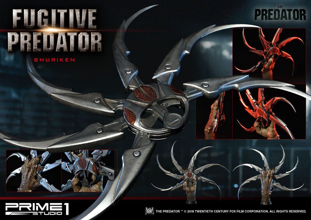Prime 1 Studio is proud to present Life Size LSTPR-03: Fugitive Predator Shuriken Bust from The Predator (2018 Film). The Predator is a 2018 Science Fiction Film that will be directed by Shane Black. It will be a sequel to the 1987 film Predator. The Shuriken is a primarily thrown Yautja weapon. Constructed with six retractable blades, it is sharp enough to cut his prey in two. The Fugitive Predator Shuriken Bust was made using Props 3D digital scan files as you will see in the film, making this the most film accurate of Fugitive Predator you will ever find.