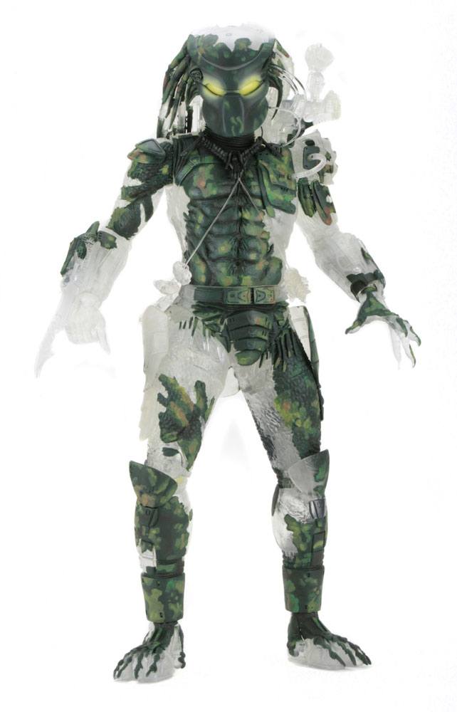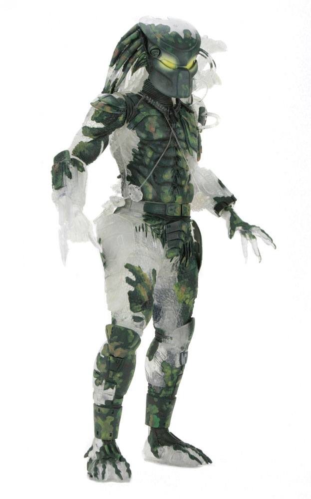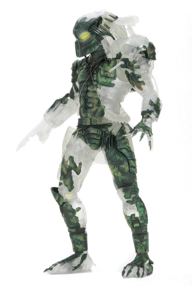 This massive, limited edition action figure marks the 30th anniversary of the original Predator movie! The stealthy Jungle Demon Predator is cast in clear plastic with camouflage accents to capture his cloaked appearance in the jungle. NECA even equipped him with LED effects to simulate the yellow glowing eyes and phasing effect seen on screen!