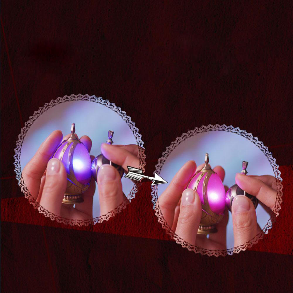 The Soul Gem and Grief Seed join the PROPLICA series to commemorate the tenth anniversary of the "Puella Magi Madoka Magica" anime! The Soul Gem glows with pink LED light, and includes forty different snippets of music, dialogue, and sound effects from the show! When brought close to the included Grief Seed the colors shift to signal "purification!"