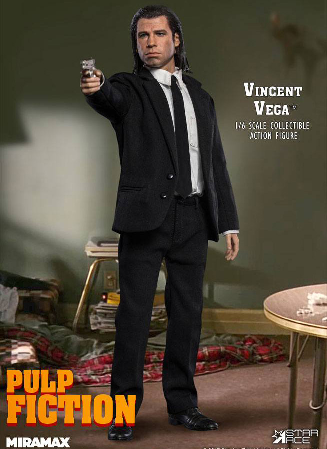 - Fully realized authentic likeness of John Travolta as Vincent Vega in the movie "Pulp Fiction" with accurate facial expression and detailed skin texture