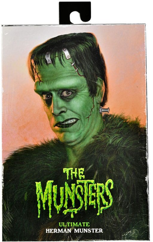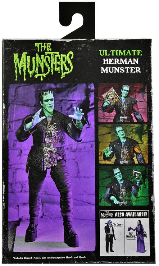 From Rob Zombie's The Munsters, NECA introduces Herman Munster as an Ultimate action figure! This creature brought to life by Dr. Wolfgang was accidentally made with the brains of a comedian but has still managed to catch the eye of the vampire Lily. This 7" scale action figure is loaded with features and accessories direct from the movie, like a copy of Herman's album Electro-Shock Daddy-O! Also includes Edgar Allen Poe book, extra interchangeable head and hands. Comes in display friendly 5-panel packaging with opening front flap featuring custom artwork by Daniel Horne.