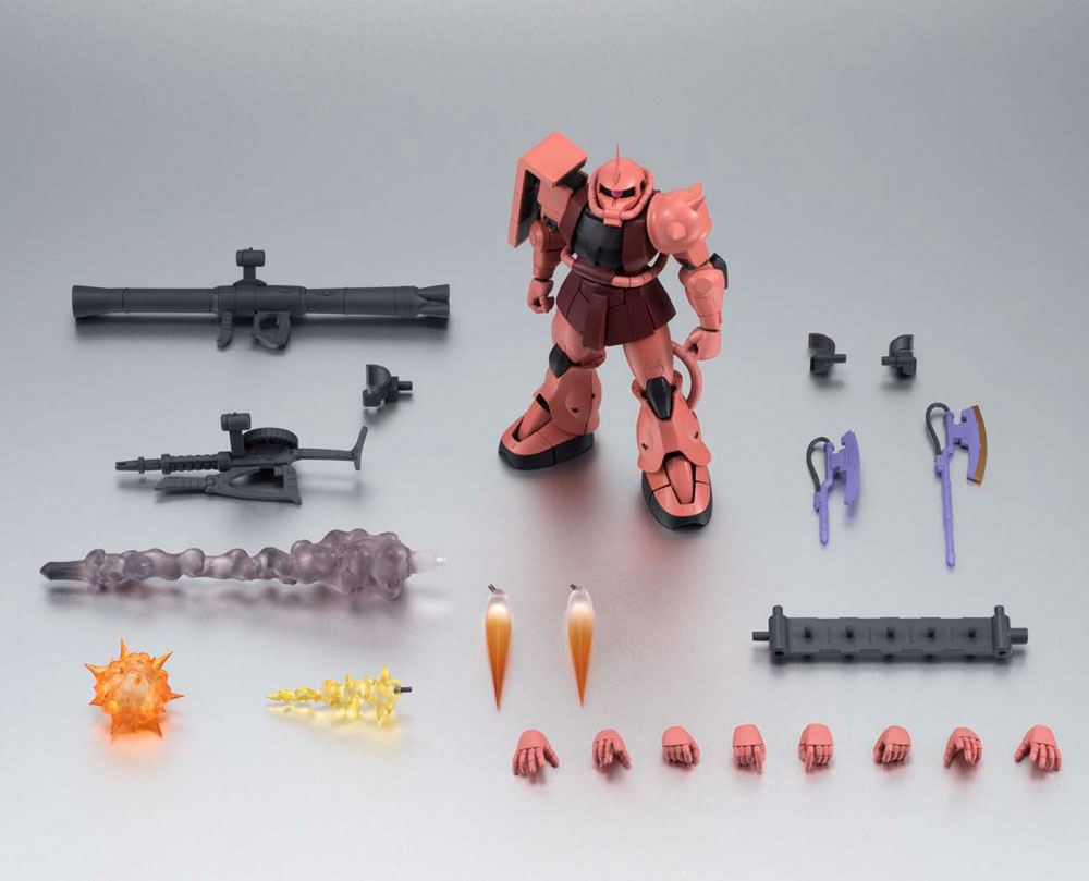 Top technology is used to create this unprecedented line of ROBOT SPIRITS. All-over new joint structure allows one to pose Char's custom Zaku in anime reminiscent poses that couldn't be made before. Newly refigured pipe parts mean this Zaku moves more freely than any before!