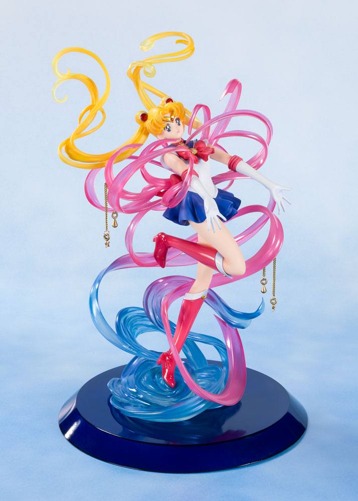 Sailor Moon joins the Figuarts Zero Chouette series, which replicates famous scenes from the anime show. Evocative sculpting captures her charming and beautiful appearance. The moon and her lace is painted with subtle gradations for added realism.