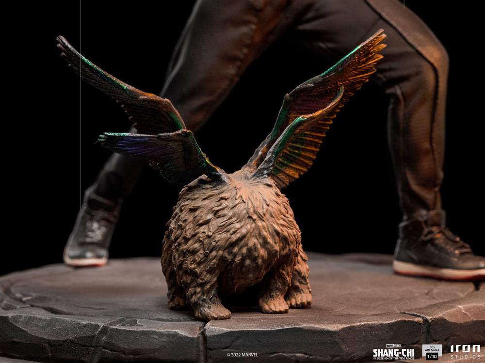 Inside the Multiverse, in a village named Ta Lo filled with animals from the Chinese mythology and accessible only through a portal on Earth, the formidable young martial artist focuses himself calm and confident, manipulating the so-called "Ten Rings", a set composed of ten metal rings of ancient and unknown origin, that gives its user many divine and mystic powers. Next to the pleasant creature called Morris, a winged furry being native from Ta Lo, of the race known as Dijang, captured by his father in the past and adopted as a pet by his allies, the fearless warrior with his new red and black costume gets ready to his biggest duel, facing his mighty father and the fearsome race of creatures named Soul Eaters. Iron Studios proudly bring the statue of another legendary hero from the MCU, presenting "Shang-Chi & Morris BDS - Shang-Chi - Art Scale 1/10", one of the greatest fighters from Marvel's universe next to the small mystic animal, inspired by the successful film adaptation by Marvel Studios.