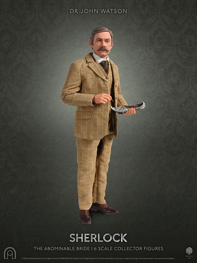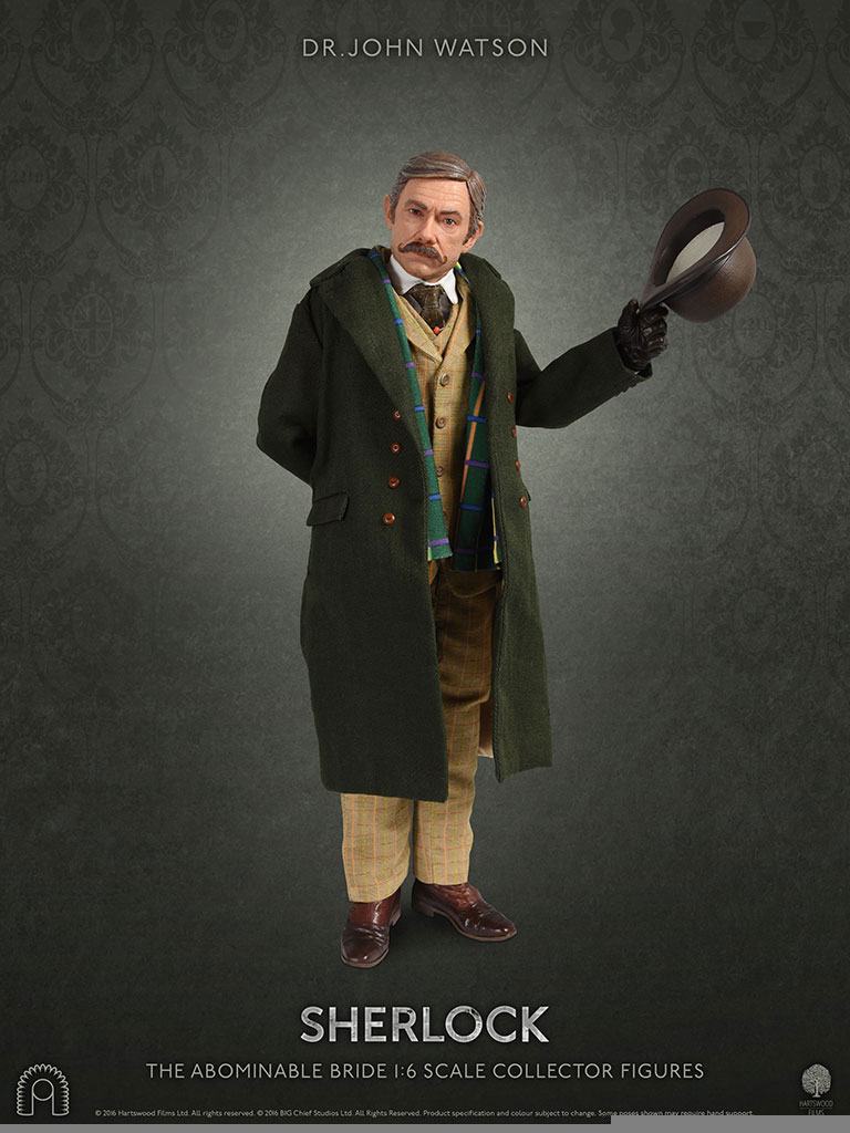 Officially licensed by the makers of Sherlock, Hartswood Films, each figure features a fully realised likeness of Martin Freeman, outfitted in his Victorian three-piece suit, overcoat and trusty bowler hat, the figure comes with numerous accessories featured in The Abominable Bride episode and a display base.