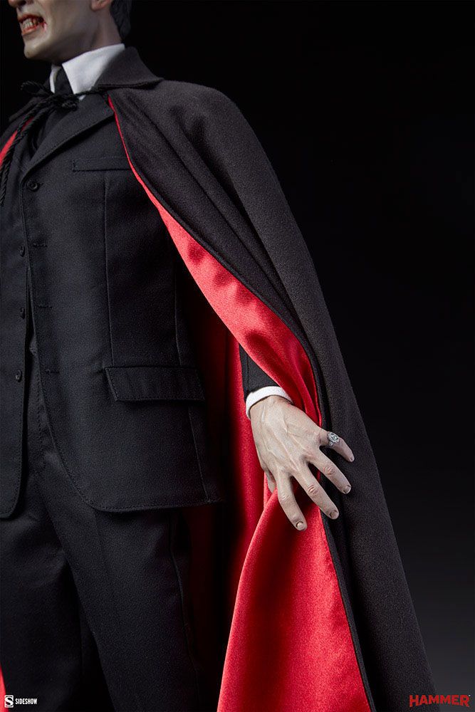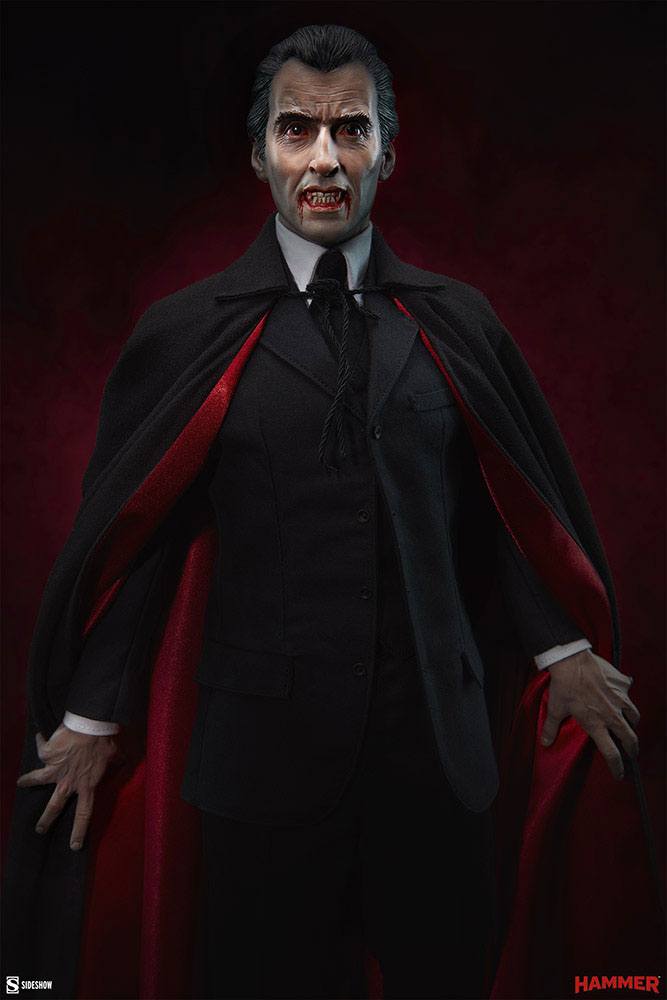 Dracula Premium Formatet är 56 cm hög ovanpå en stenliknande bas med gotiska gargoyles. Skulpterad med en otroligt detaljerad likhet av skådespelaren Christopher Lee med de blodsprängda ögonen och glänsande huggtänderna som för alltid förändrade popkulturens bild av vampyren. En noggrann färgapplikation runt munnen fångar känslan av nyspillt blod, och hans tunga ögonbryn och bakåtslickade hår kompletterar hans skrämmande porträtt.
