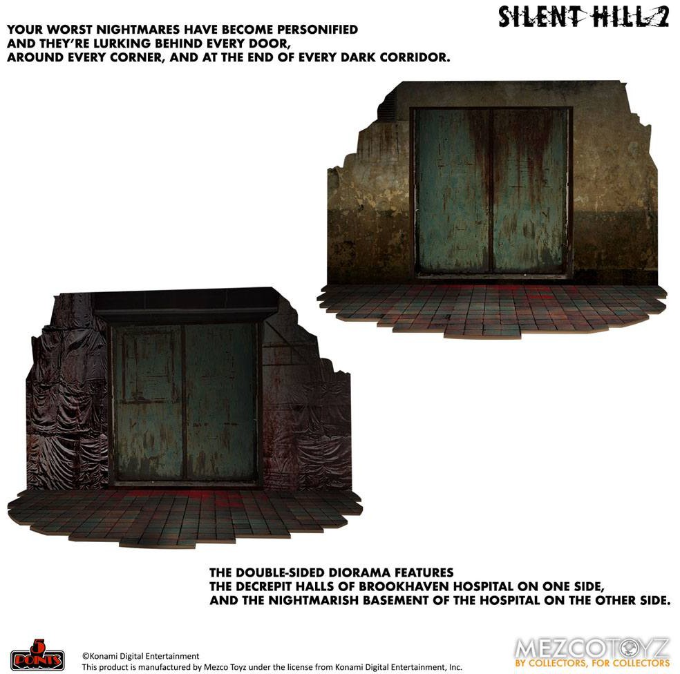 Red Pyramid Thing och Bubble Head Nurse från Silent Hill 2 kommer nu som actionfigurer tillsammans med en tvåsidig diorama. Figurerna har fem rörliga leder och kommer med tillbehör.