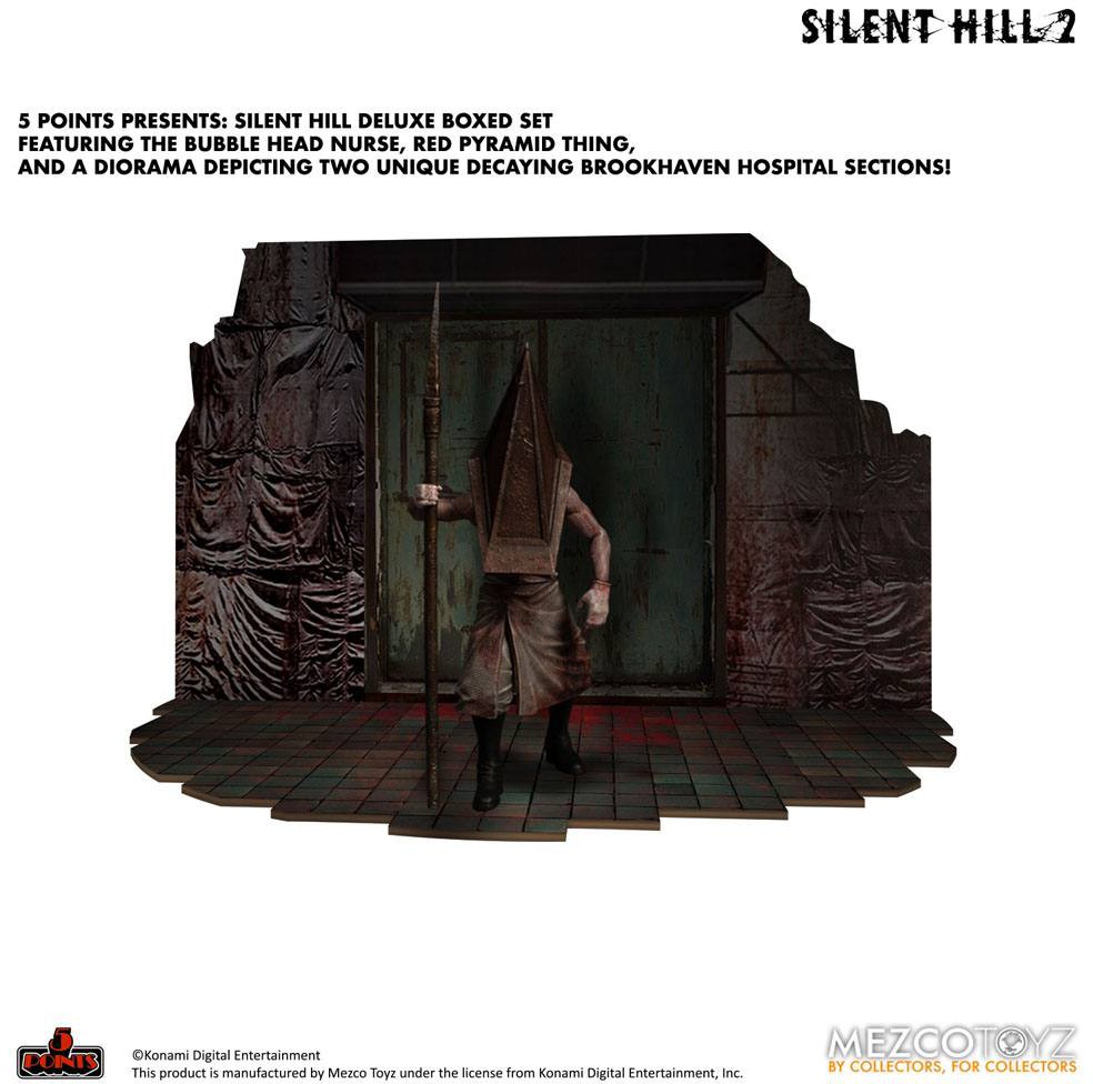 5 Points presents: Silent Hill Deluxe Boxed Set featuring the Bubble Head Nurse, Red Pyramid Thing, and a diorama depicting two unique decaying Brookhaven Hospital sections!