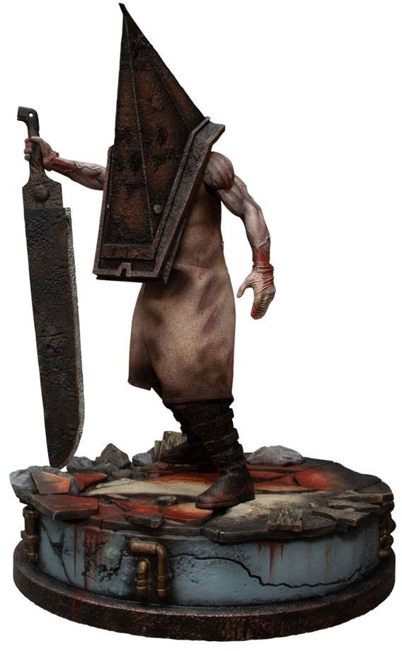The Mezco's Static Six: Silent Hill 2 - Red Pyramid Thing-statyn är baserad på den mardrömsframkallande Silent Hill 2. Den ohyggliga karaktären bär väderbitna byxor och står hotfullt på toppen av Brookhaven Hospital. Red Pyramid Thing är redo att slå med sitt stora svärd eller stora spjut, som han håller med sin utbytbara högra hand och kan bytas ut på sin utbytbara högerarm för en mängd olika poser.