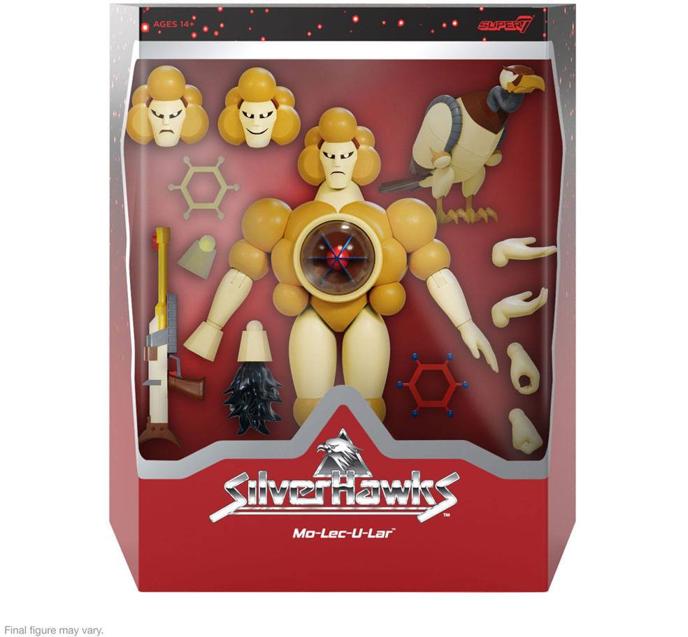 18 cm hög, fullt ledad SilverHawks Ultimates! Mo-Lec-U-Lar actionfigur. Kommer med utbytbara huvuden, händer, samt tillbehör. Made-To-Order.