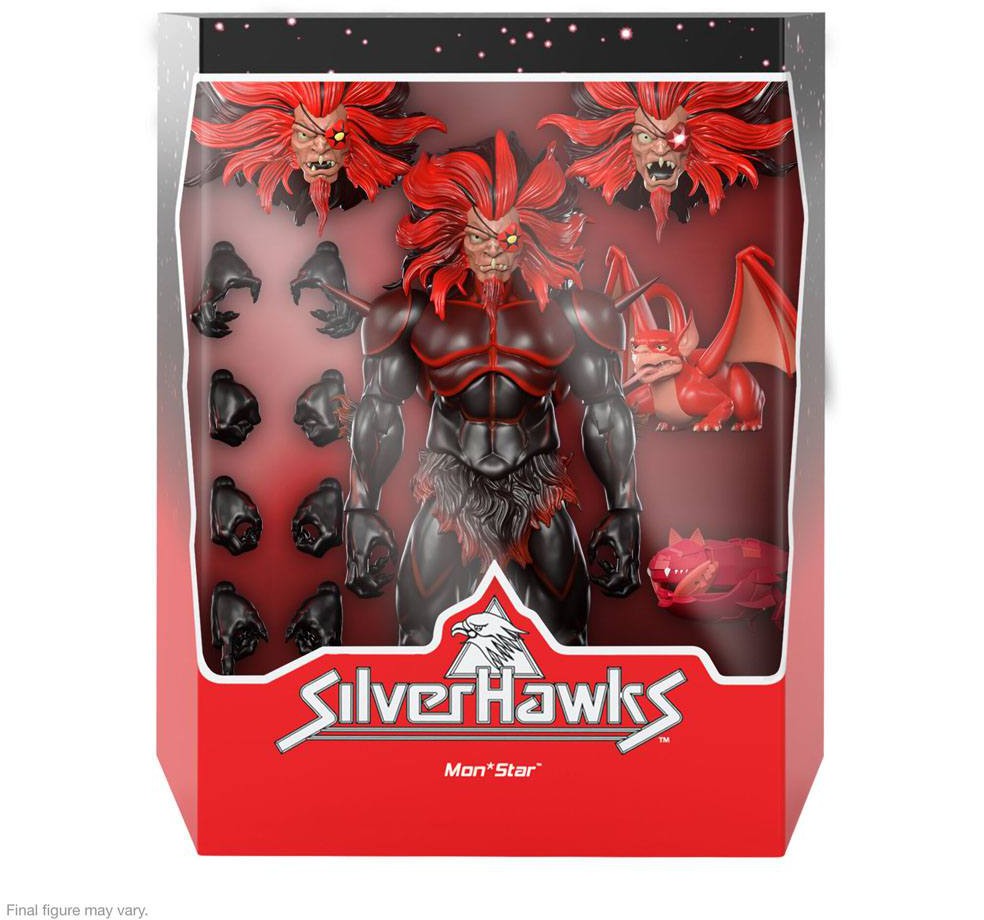 Den galaktiska mobbossen Mon*Star kanske faktiskt är mer läskig utan sin robotrustning, vilket inte lämnar någon tvekan om att han är en skräckinjagande fiende för SilverHawks och invånarna i Limbo Galaxy! Denna skräddarsydda helt ledade SliverHawks ULTIMATES!-figuren av Mon*Star har förstklassiga detaljer och kommer med utbytbara huvuden och händer och en mängd andra tillbehör, inklusive ett par Sky Shadow-figurer. Mon*Star har rymt säkerhetsfängelset Penal Planet 10 två gånger, så låt inte chansen att lägga till Mon*Star till din samling undgå dig!
