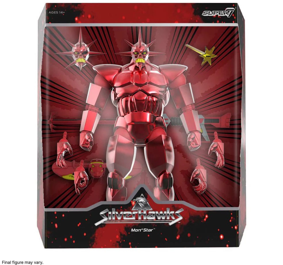 This fully articulated action figure comes from Super7's "SilverHawks" collection. It is approx. 18 cm tall and comes with additional accessories and exchange parts in a window box.