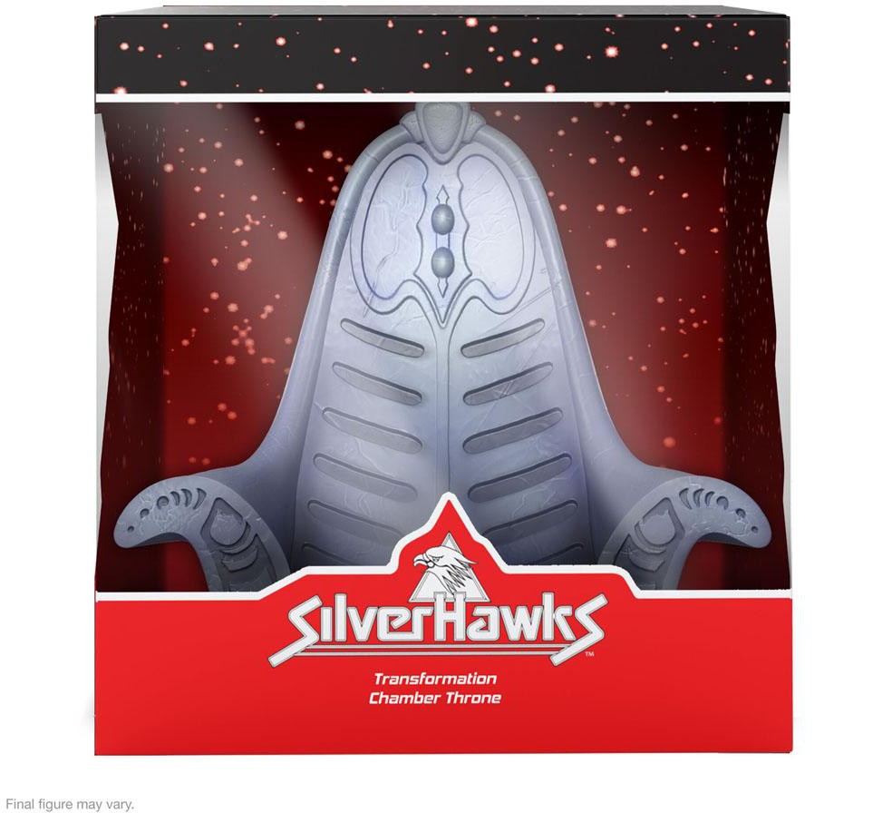 SilverHawks ULTIMATES! Transformation Chamber Throne är mycket detaljerad och är en imponerande ca. 20 cm hög, ca. 23 cm bred och djup nog för att en figur i ULTIMATES!-storlek ska kunna sitta stolt i den.