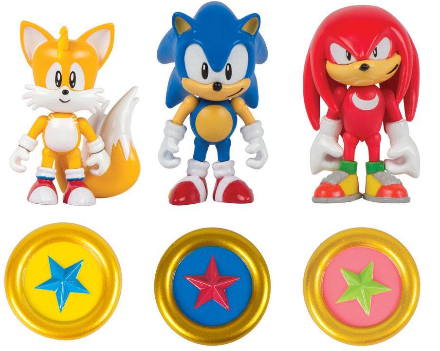 This 3-pack contains 3 officially licensed Sonic action figures. Each figure stands approx. 8 cm tall and comes with a sonic-ring in a window box.
