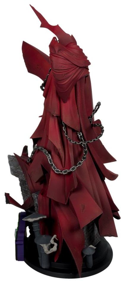 Inspirerad av Batman/Spawn-variantomslaget av Greg Capullo och Todd McFarlane kommer denna fantastiska Spawn-resinstaty. Med en mästerlig skulptur är Capullos konststil perfekt fångad med höjdpunkten i skulpturen som är Spawn's varumärke flytande, taggig och oändlig cape.