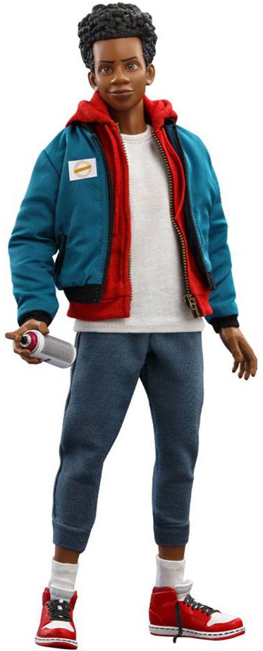 Figuren innehåller två nyutvecklade ansiktsskulpturer som fångar Miles Morales ikoniska uttryck i filmen, en fint utformad hårskulptur, ett delvis maskerat tillbehör fäst vid ansiktsskulpterna, ett maskerat huvudskulptur med flera par utbytbara ögon för att skapa olika uttryck, en vackert skräddarsydd röd och svart Spider-Man-kostym med webbmönster, mycket detaljerade kläder som återskapar Miles avslappnade stil och graffiti-målningsstil, matchande utbytbara händer, ett extremt stort utbud av tillbehör inklusive en sprayburk, ett Spider-Man-kostympaket, diverse webbtillbehör, en karaktärsbakgrund med dekorativa klistermärken, också ett dynamiskt figurställ för flygpositioner.