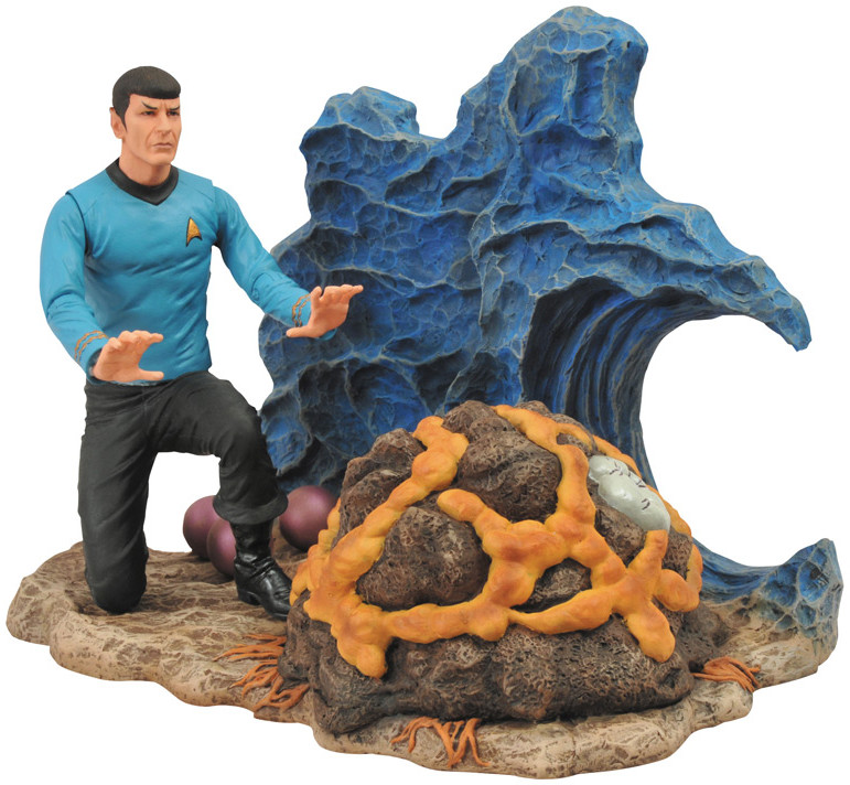 It´s an all-new Star Trek action figure line designed especially for collectors! Packaged in display-friendly Select packaging, each 18 cm scale figure comes with a diorama-style accessory and interchangeable parts for a variety of display options. The first offering in this new series is Commander Spock, first officer of the U.S.S. Enterprise, who comes with a cave backdrop and the Horta alien from the classic episode ´Devil in the Dark.´