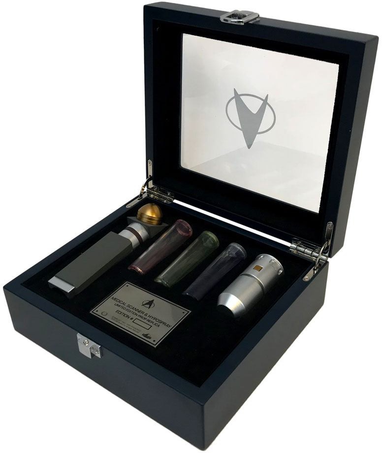 Denna produkt replikerar två ikoniska rekvisita som används av läkare i Star Trek: The Next Generation. Den består av en hypospray (med utbytbara injektionsflaskor) och en handskanner. Båda har elektroniska ljus- och ljudeffekter och är utformade i tunga gjutna metallkroppar. Varje numrerade uppsättning i begränsad upplaga levereras med ett träpresentationsfodral, gjuten metallplatta och ett äkthetsintyg/berättelseshäfte och kommer att ge ett bra tillskott till alla Star Trek-samlingar.