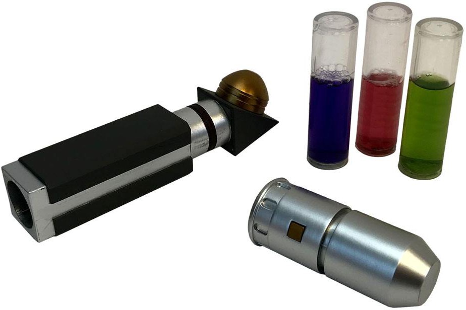 Hypospray och handskannern fungerar vardera på tre LR44-batterier (ingår).