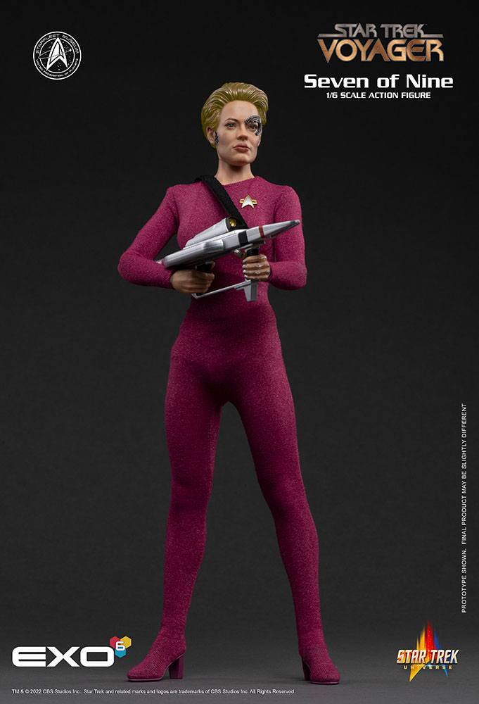 She belongs in your collection of museum-grade collectible Star Trek figures! EXO-6's next release from Star Trek: Voyager is former Borg drone Seven of Nine, Tertiary Adjunct of Unimatrix 01; a human previously known as Annika Hansen until she was assimilated by the Borg Collective at the age of 6.
