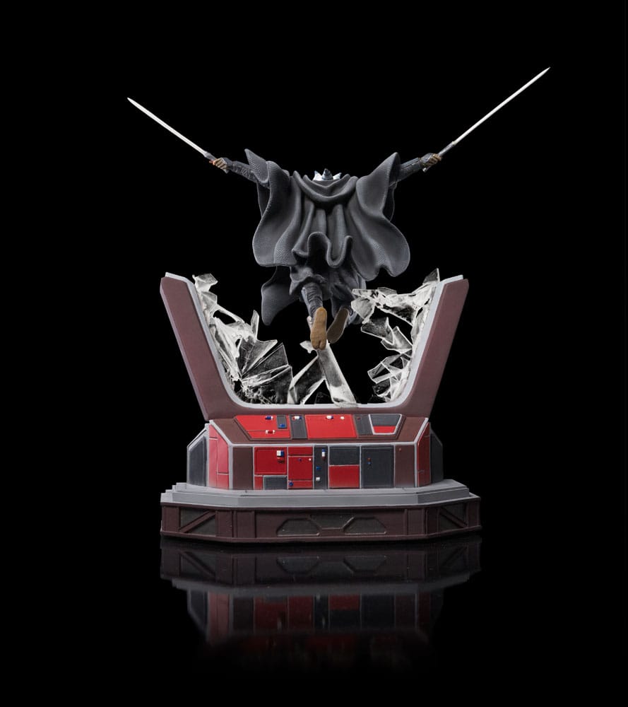 Just like a bird of prey ready to capture its food, the pariah Force-sensitive warrior jumps through a window while opening her arms, wielding two different-size Lightsabers with her body covered by a black poncho, she attacks with precision and concentration, keeping her eyes focused on her target. Trained in the past in the ways of the Jedi by Anakin Skywalker, she lost faith in those she trusted after being wrongfully accused, but she never abandoned the objectives of using her gifts to bring order, justice, and peace to the galaxy. Inspired by her own show produced and available on the streaming service Disney+, Iron Studios present the statue "Ahsoka Tano Deluxe - Ahsoka series - Art Scale 1/10" in a special celebratory edition for the show, numbered and limited to 999 statues.