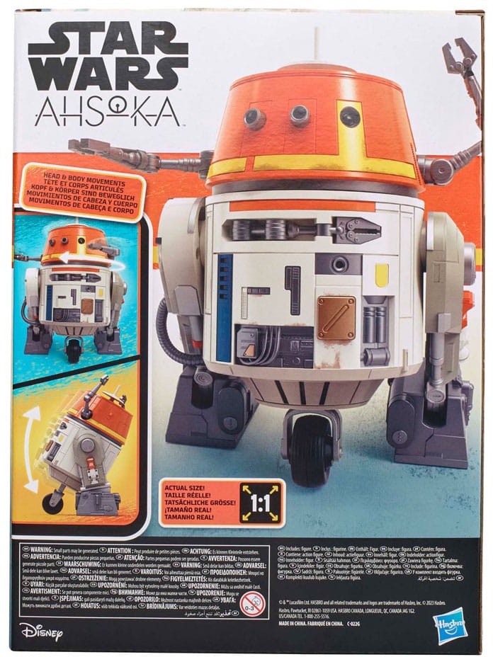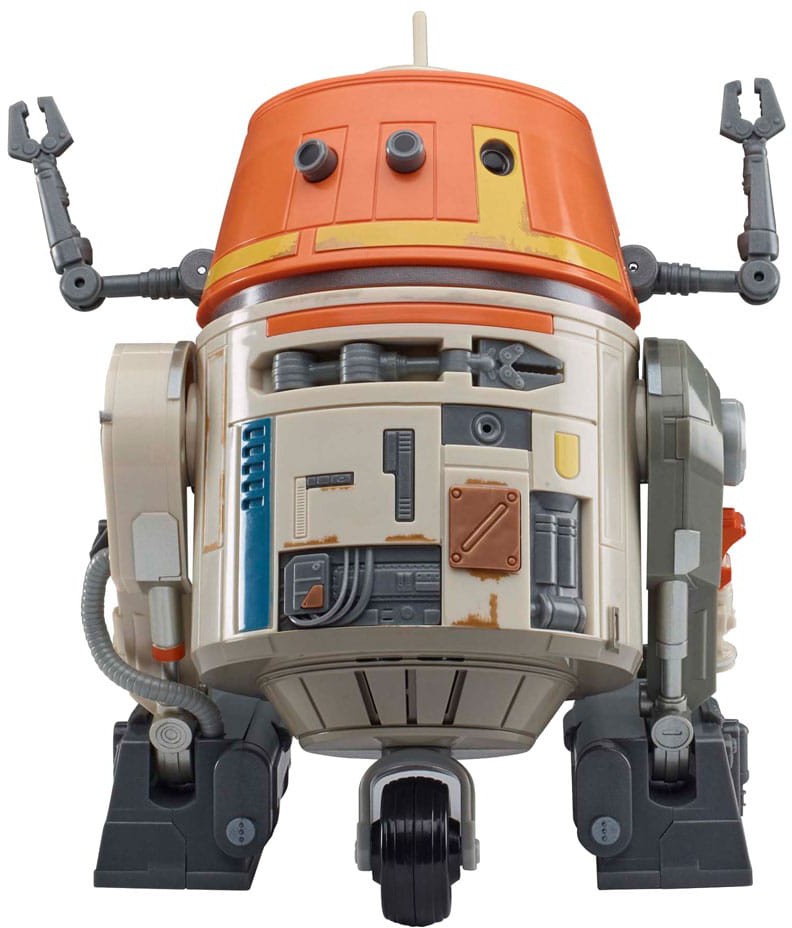 The Star Wars Chatter Back Chopper animatronic from Hasbro's Star Wars collection brings the fan-favorite droid from a galaxy far, far away right into your home. This electronic toy features character design and weathered deco inspired by the Ahsoka live-action series on Disney+. Unlock more than 40 sound and movement combinations by pressing the button on Chopper's body, posing his front arm, or by making sounds of your own. Watch as he really responds with different sound effects and movements with his arms, body, and head. Animatronic droid toys make great Star Wars gifts for kids ages 4 and up and are the perfect addition to any fan's Star Wars collection.