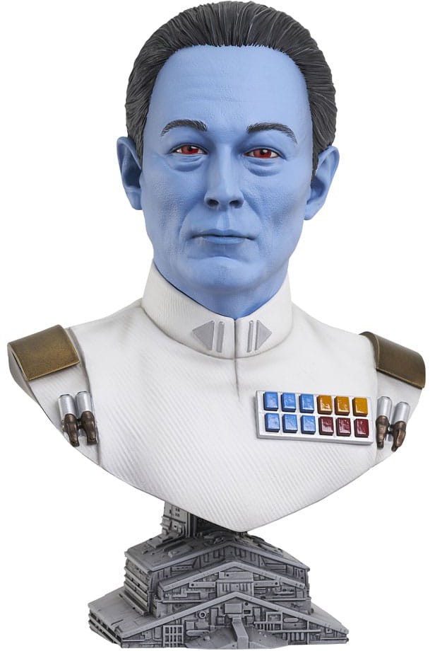 Storamiral Thrawn är en legend i Imperiet, och nu är han en legend i 3D! Den levande Thrawn har äntligen avslöjats i Disney+-serien Star Wars: Ahsoka, och Gentle Giant Ltd. firar med ett porträtt av den blåhudade skurken i bystform! Bysten i skala 1/2 är ca 25 cm hög och sitter på en Star Destroyer-bas, och den är begränsad till endast 1 000 exemplar. Den levereras med ett numrerat äkthetsintyg i en färgglad låda.