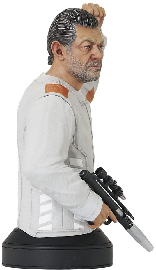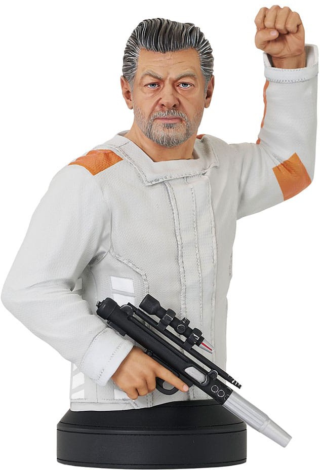 A Gentle Giant LTD release! Down with the Empire! Imperial prisoner and gang boss Kino Loy makes his escape into the Star Wars 1/6 scale mini-bust line from GG LTD! Measuring approximately 6.5 inches tall, with one hand raised in victory and the other holding a DH-17 blaster pistol, this mini-bust sits atop a black pedestal base and is limited to only 2000 pieces. It comes packaged in a full-color box with a numbered certificate of authenticity.